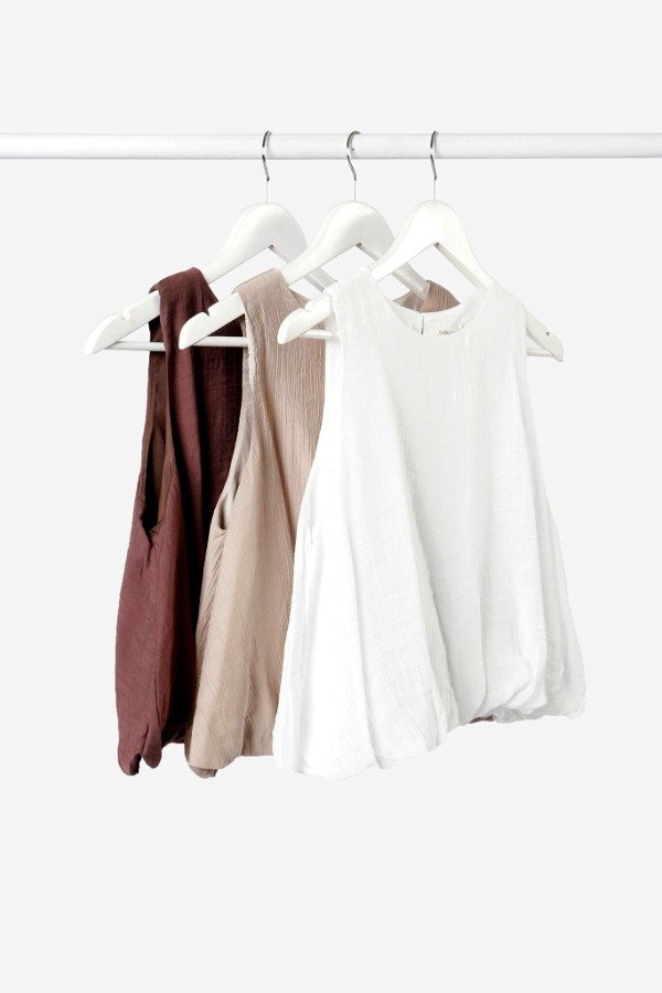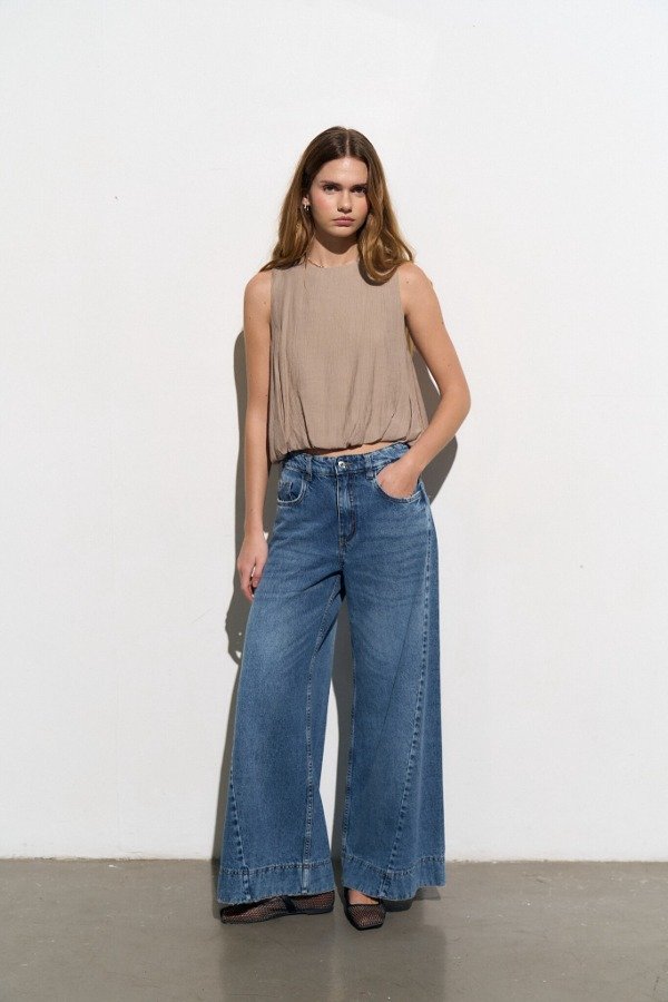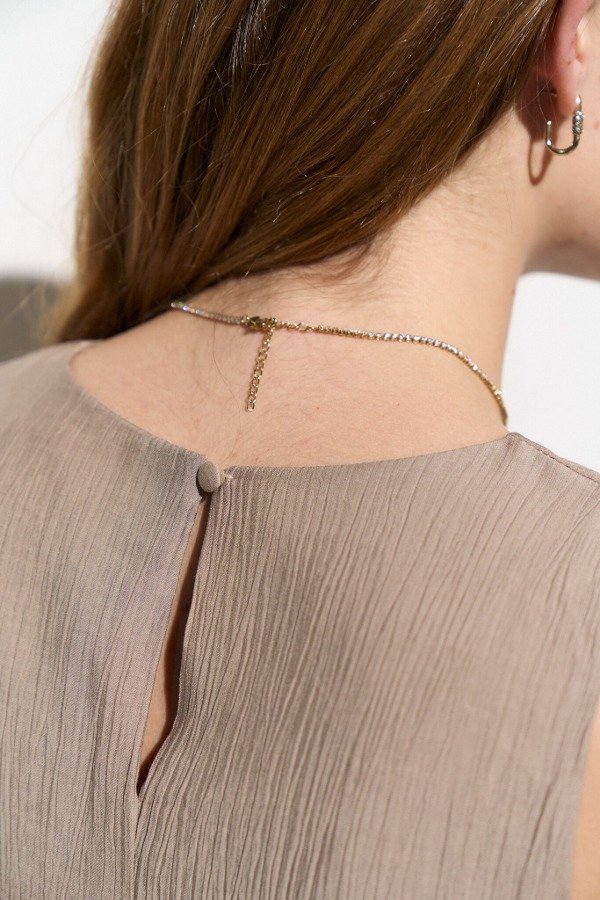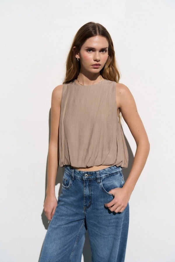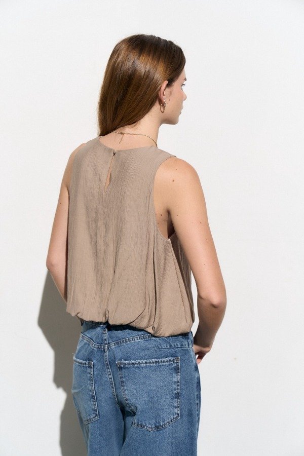 Blusa balloon escote redondo y manga sisa con boton en espalda.